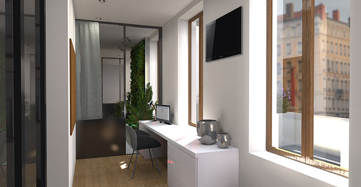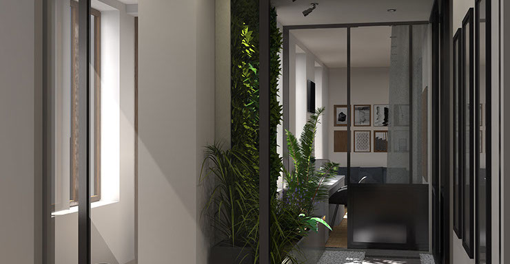Chacun son espace chambre/salle d'eau et des espaces communs articulés autour d'un jardin d'hiver, lieu de vie et d'échanges de la colocation.