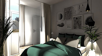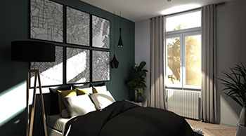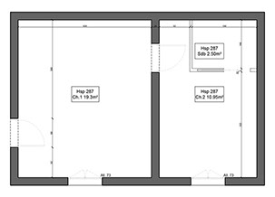 L’enfilade est supprimée par la création d’un nouvel accès en façade sud pour la seconde chambre, l’ancien accès étant désormais destiné à la salle d’eau.