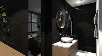 L’idée du projet était donc de structurer l’espace en créant une salle de douche accessible par les deux chambres, comprenant toutes les commodités nécessaires.