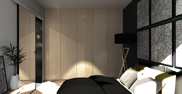 Le petit plus du projet a été d'ajouter un linéaire de rangements dans chacune des chambres afin de maximiser l'espace.