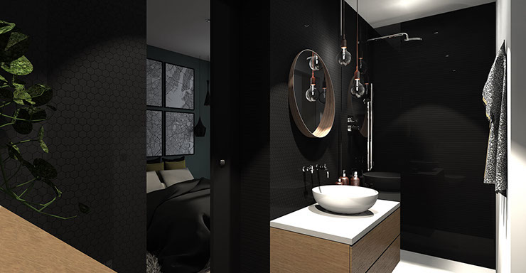 L’idée du projet était donc de structurer l’espace en créant une salle de douche accessible par les deux chambres, comprenant toutes les commodités nécessaires.
