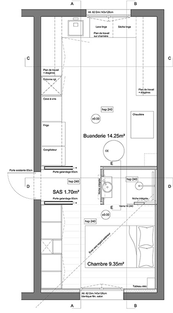 Pour ce projet il s'agissait de rénover un demi rez de chaussée, qui est actuellement un garage partiellement réaménagé, comprenant une buanderie/cellier et un espace nuit.